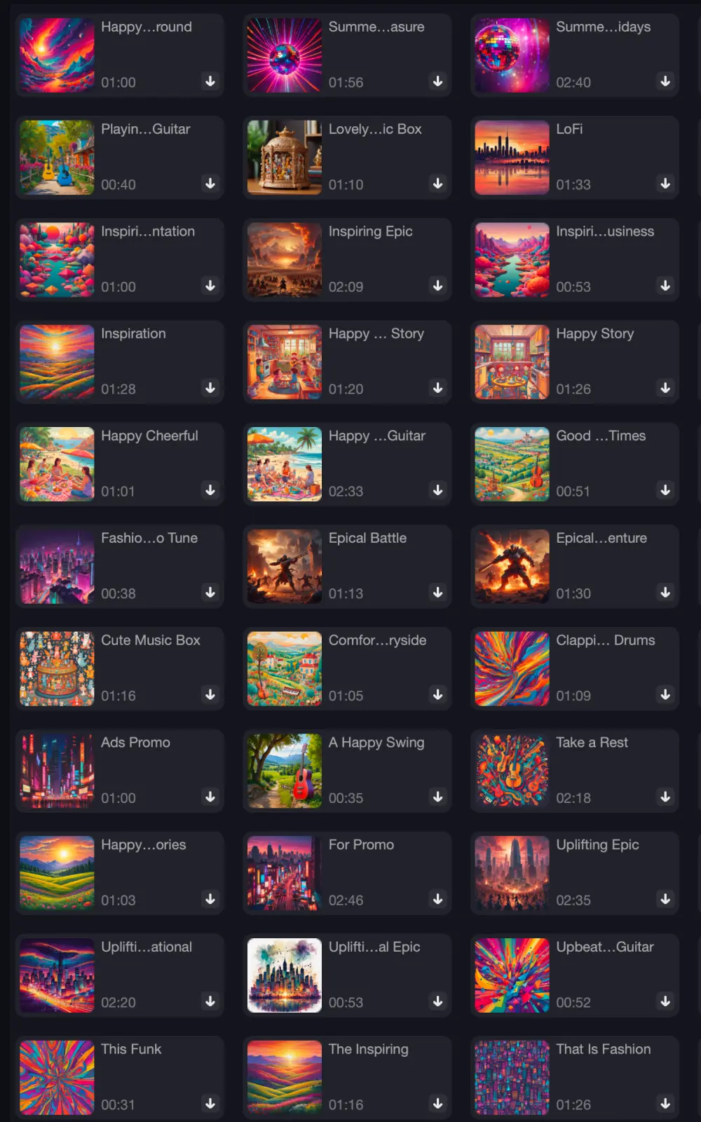 Explore 100M+ stock media, 2000+ titles, text, transitions, and 1000+ music tracks & stickers to boost your creativity.